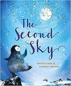Gilbert, a baby penguin, wants to fly in the sky like an albatross. He practices to no avail because he has big clumsy feet and small fluffy wings. He falls on his face, his back, and his bottom. His uncle tells him to give it up, but Gilbert knows he will find a way to fly. He finally spreads his wings, jumps, tumbles, and splashes into the sea. He sinks and sees stars, moons, clouds, forests, gardens, and mountaintops. Under the sea, he flies. He discovers the second sky in his own element. The watercolor and pencil illustrations are beautiful with Gilbert’s movement and action. mjw |